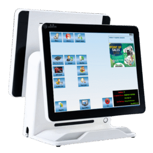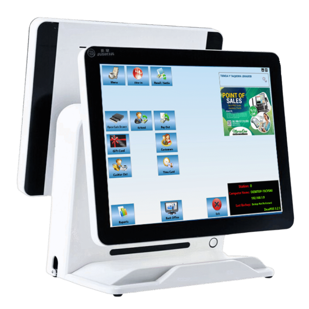Moderna y elegante computadora punto de venta (POS) todo en uno, diseñada especialmente para tiendas, restaurantes, cafeterías, salones de belleza y pequeños negocios.